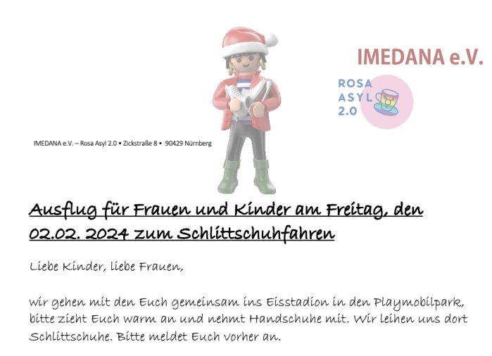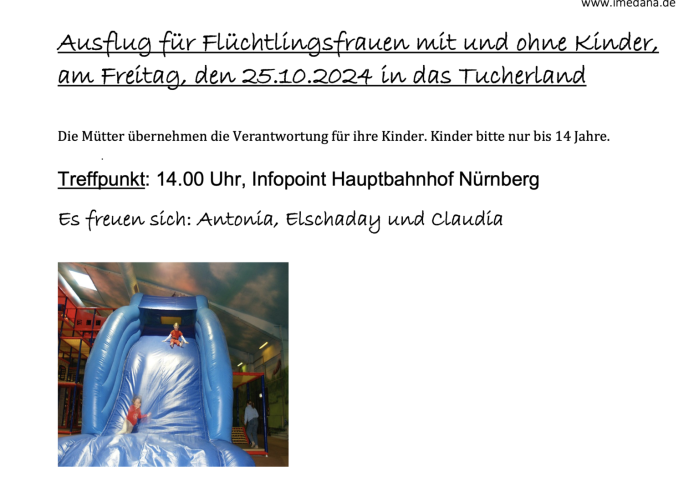 Willkommen in Nürnberg und Umgebung. Wir möchten Flüchtlingsfrauen, ihren Kindern und LGBTIQ* die Gelegenheit geben, Orte kennen zu lernen, um sie für Freizeitgestaltung, Kultur und Information zu nutzen. Zum Beispiel: Stadtbibliothek, Schwimmbad,